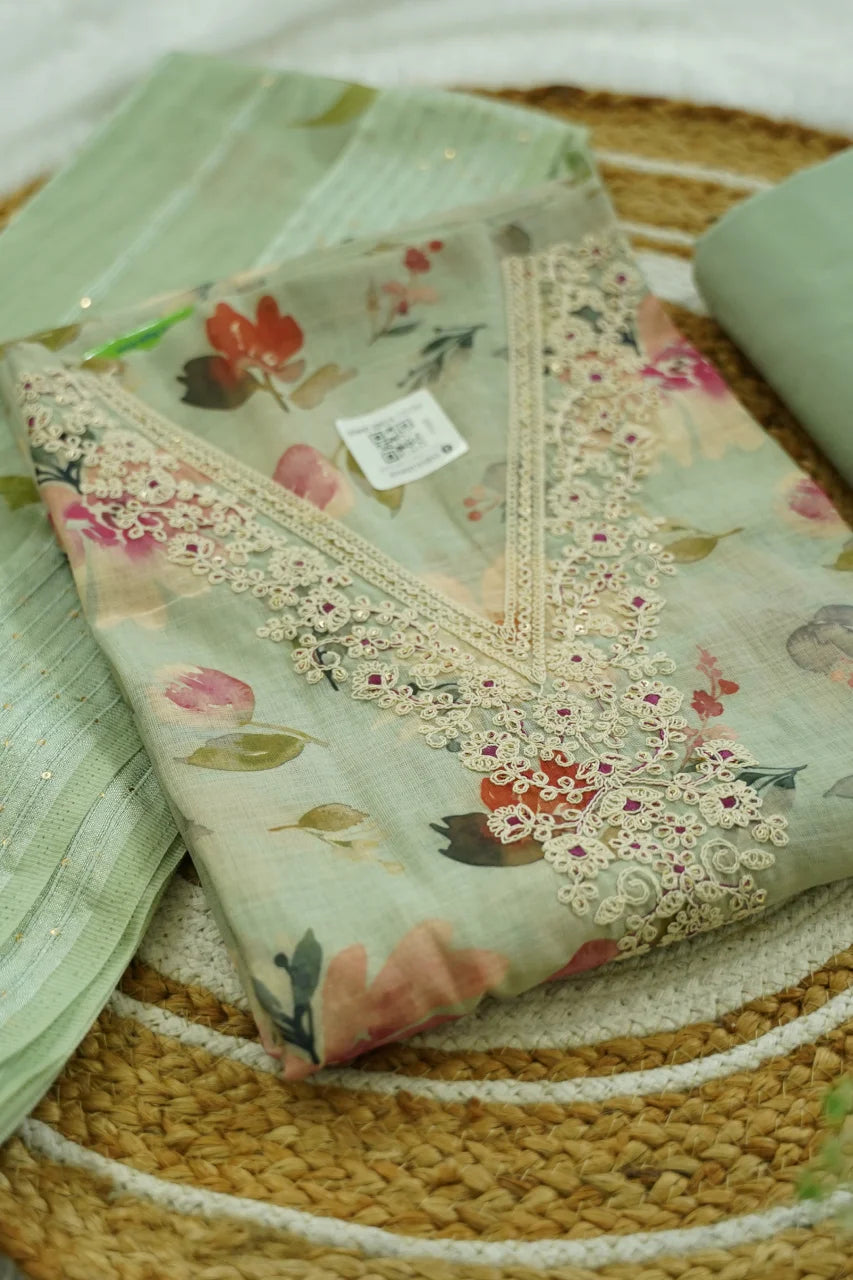 Mint Garden Embroidered Unstitched Kurti Set